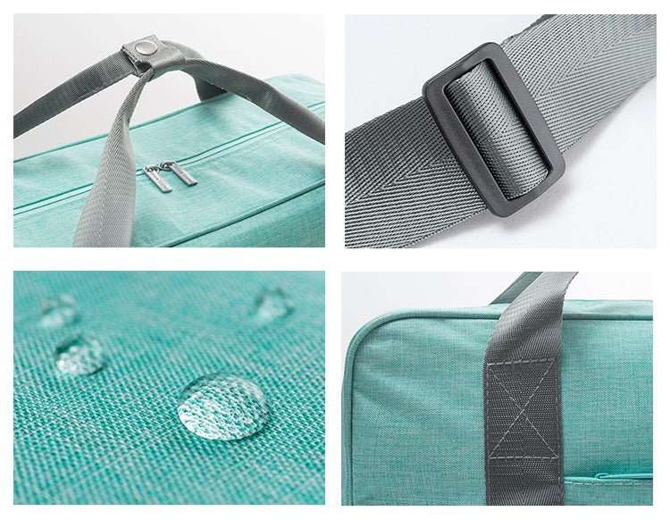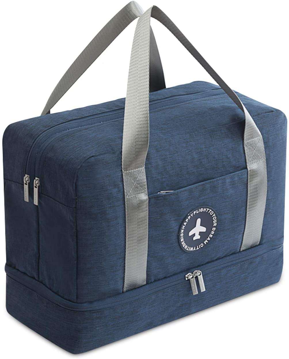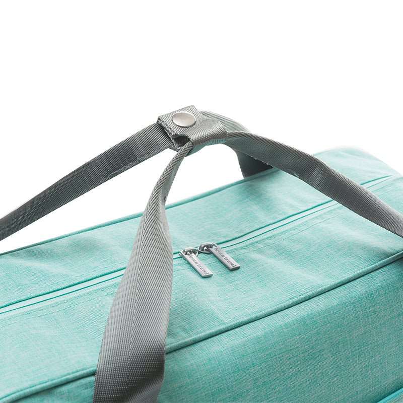 Bolso de mano con 3 secciones. Sección principal, sección impermeable y sección especial para calzado. Medidas: 30cm x 18cm x 39cm.