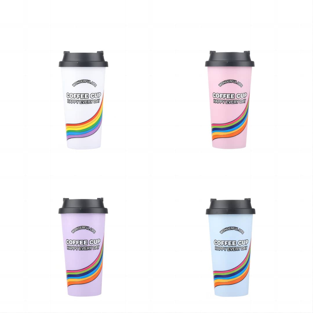 Vaso con Diseño Arcoiris Reutilizable con Tapa