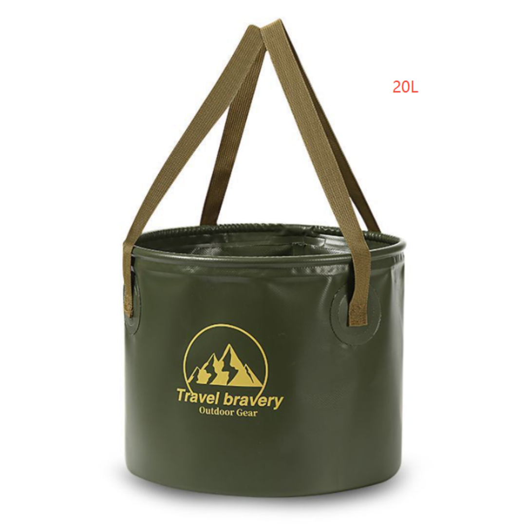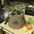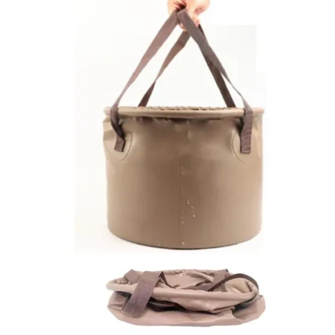Balde portátil plegable color marrón, hecho de material impermeable y resistente. Su diseño compacto permite transportarlo fácilmente en mochilas o vehículos. Ideal para camping, pesca, limpieza o jardinería. Ligero, duradero y con asas reforzadas para un manejo cómodo y seguro en todo momento.