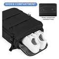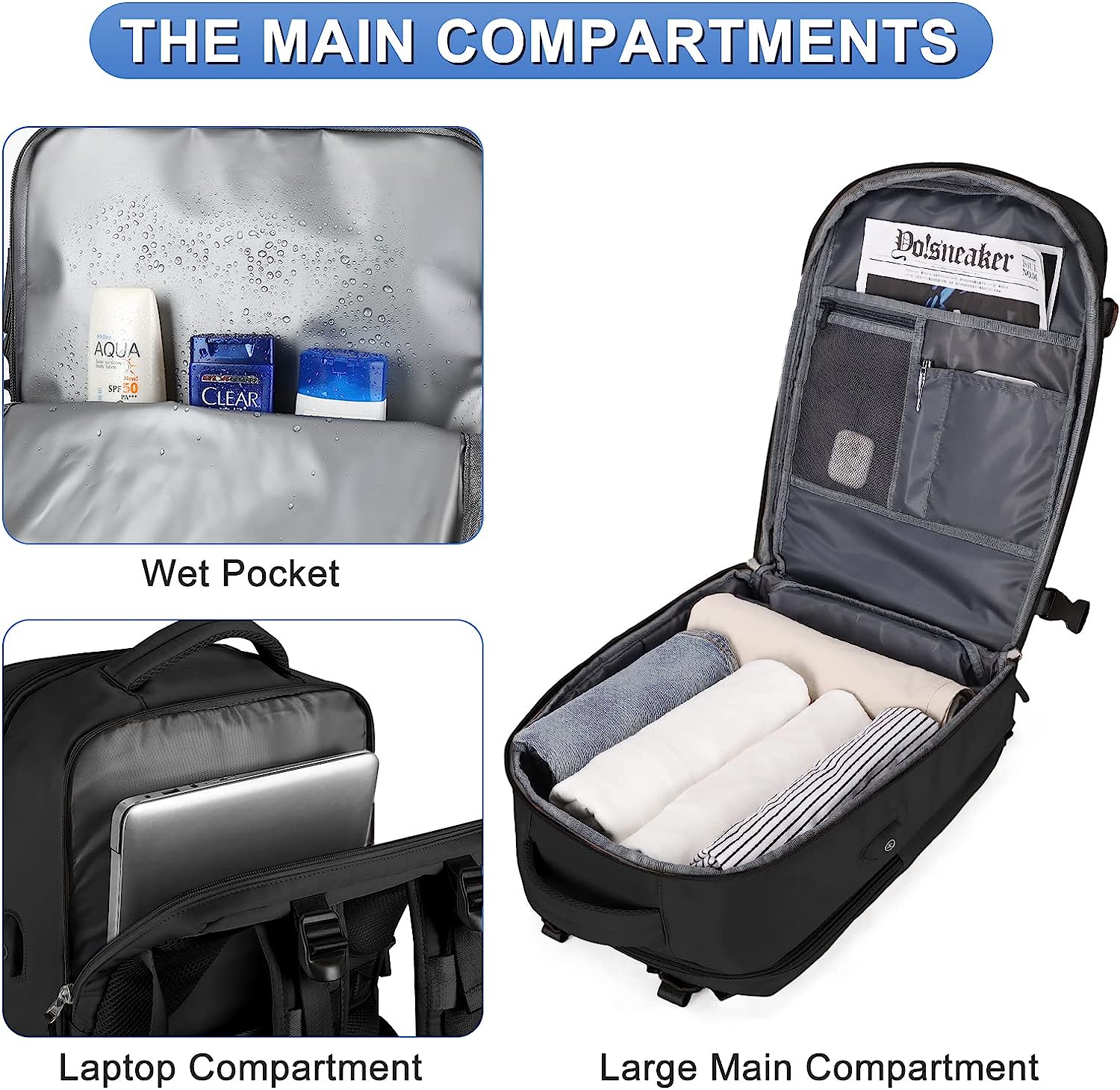 Cuenta con bolsillo frontal impermeable para poder llevar tus artículos de aseo, bolsillo central principal con apertura total para poder organizar tu equipaje sin problemas y bolsillo trasero ideal para laptops. Luego cuenta con bolsillos secundarios al frente para electrónicos, llaves, accesorios, etc. Dos bolsillos laterales para termos/botellas, un bolsillo en el espaldarte ideal para llevar tu teléfono, dinero y/o documentos contra tu cuerpo y obviamente también cuenta con enganche para la valija.