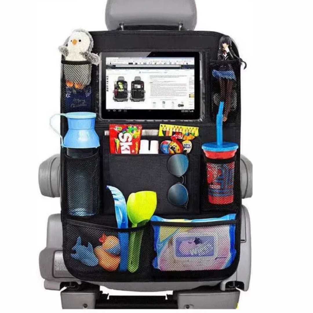 Mantén tu auto limpio y ordenado con este organizador para asiento trasero. Incluye múltiples bolsillos para botellas, juguetes, snacks y tablet. Fabricado en material resistente y fácil de limpiar. Perfecto para viajes familiares, ofrece comodidad y entretenimiento para los pasajeros. Compatible con la mayoría de asientos de auto.