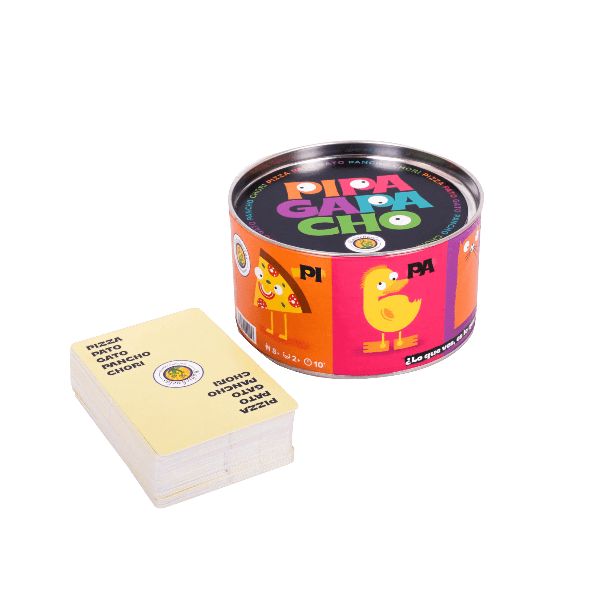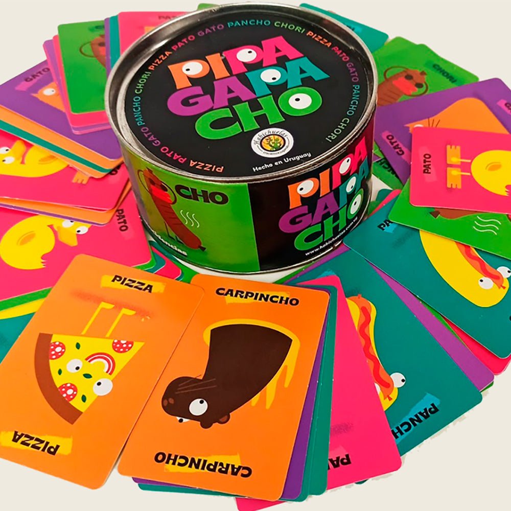 El Pipa es un juego rápido y sencillo, para jugar en familia y con amigos, para poder descartarte deberás ser el más rápido en golpear el mazo cuando haya coincidencia: “lo que ves, es lo que decís?” Cuidado que todo es muy parecido!!