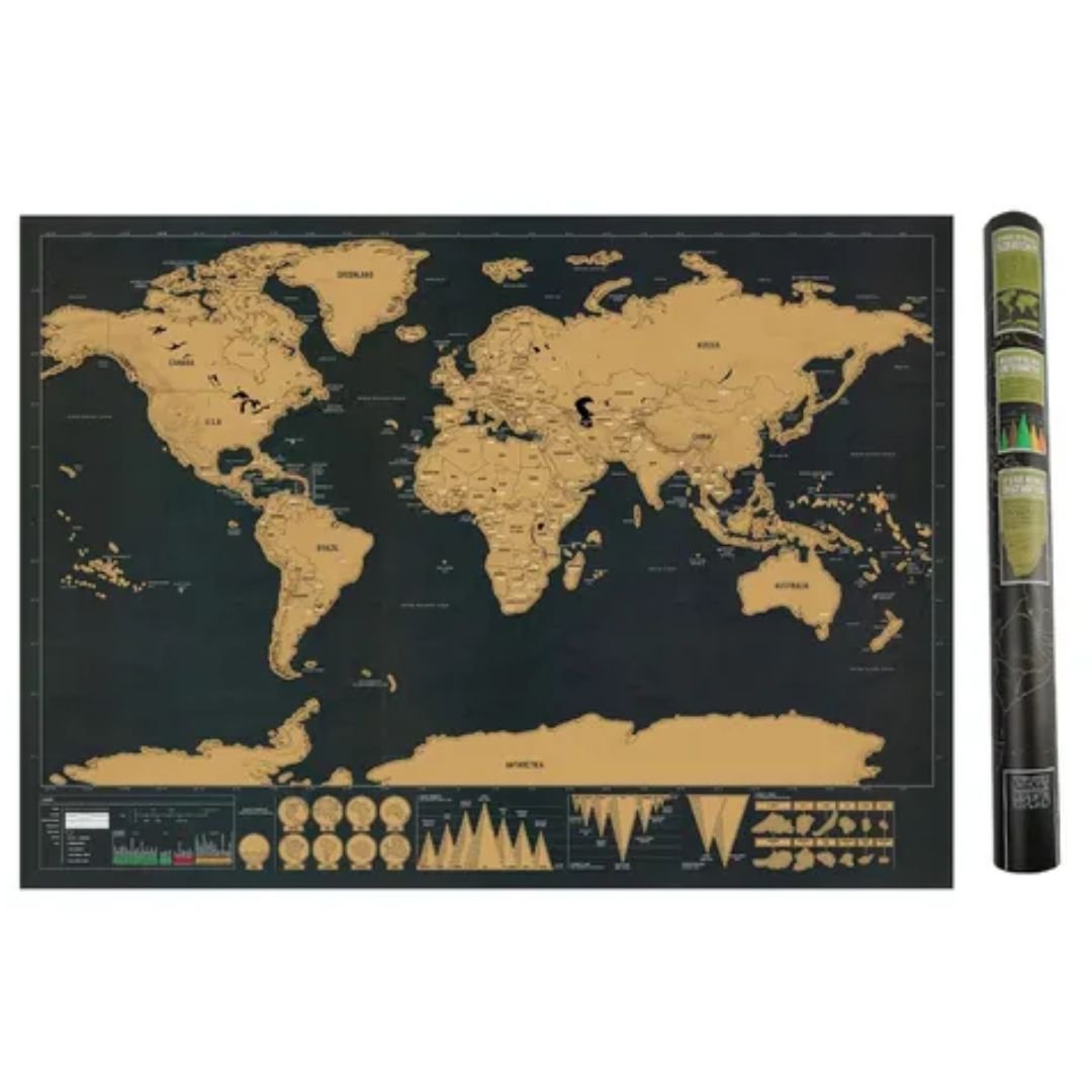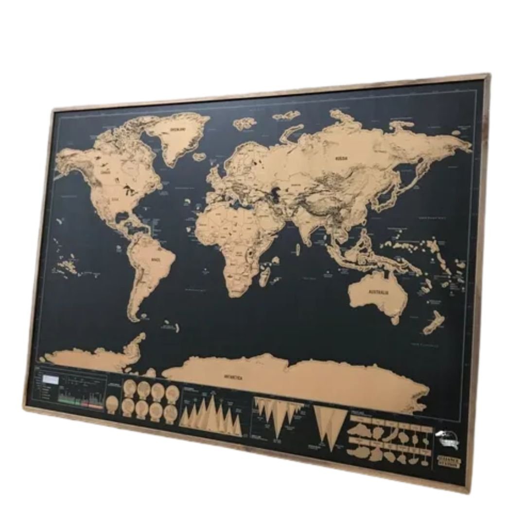 Mapa del mundo raspable diseñado para viajeros que aman descubrir nuevos destinos. Permite raspar los países visitados revelando colores vibrantes debajo. Perfecto como decoración o regalo original. Fabricado con materiales de alta calidad y presentado en tubo protector ideal para obsequiar.