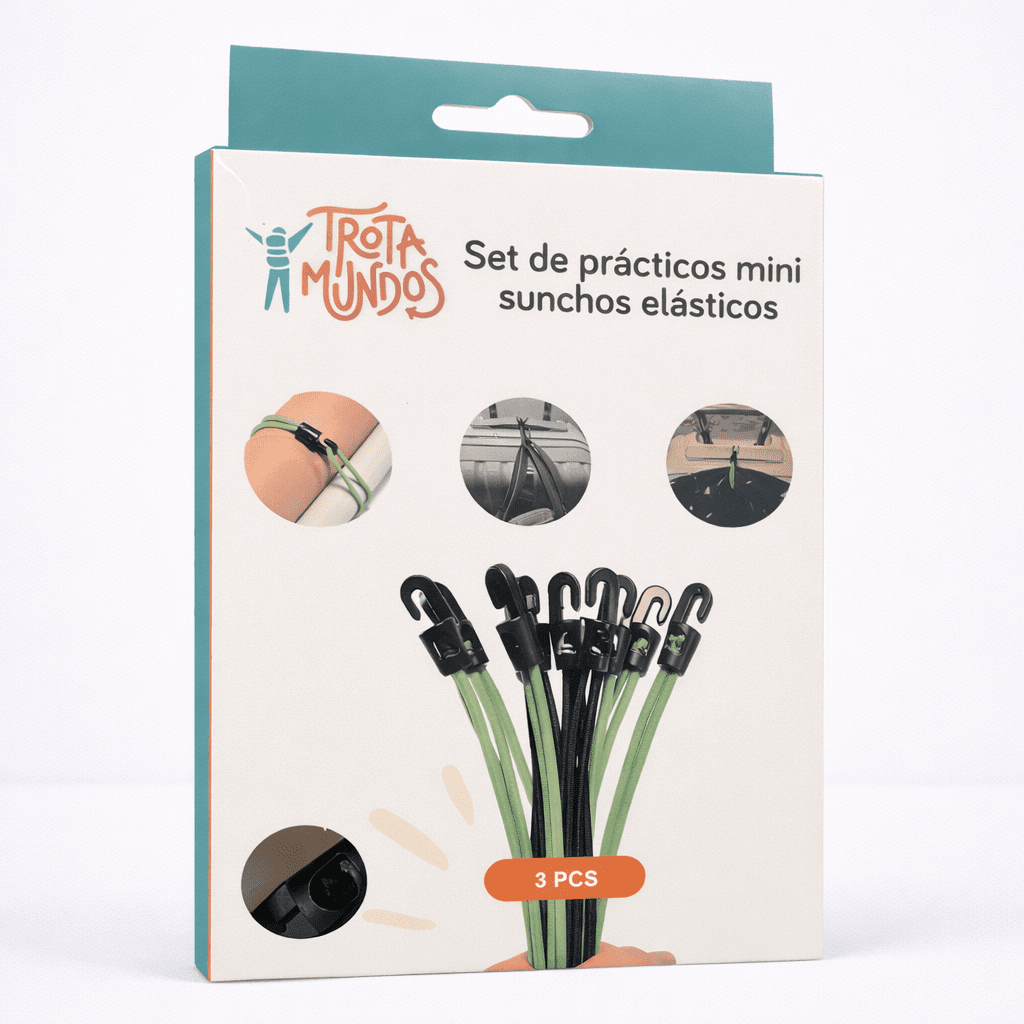 Este set de 2 sunchos elásticos reforzados es perfecto para asegurar equipaje, valijas, mochilas, bolsos, bicicletas, autos o cualquier carga liviana. Son resistentes, flexibles y súper prácticos para usar en viajes o en el día a día.